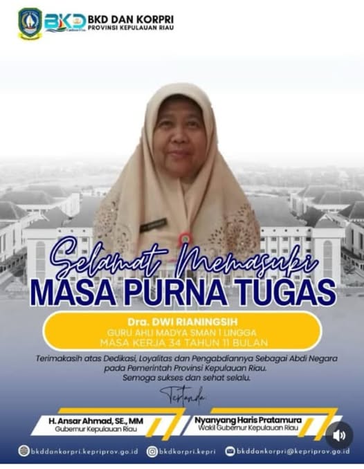 Terimakasih atas dedikasi, pengabdian dan tanggungjawab nya selama bertugas di SMA Negeri 1 Lingga.
